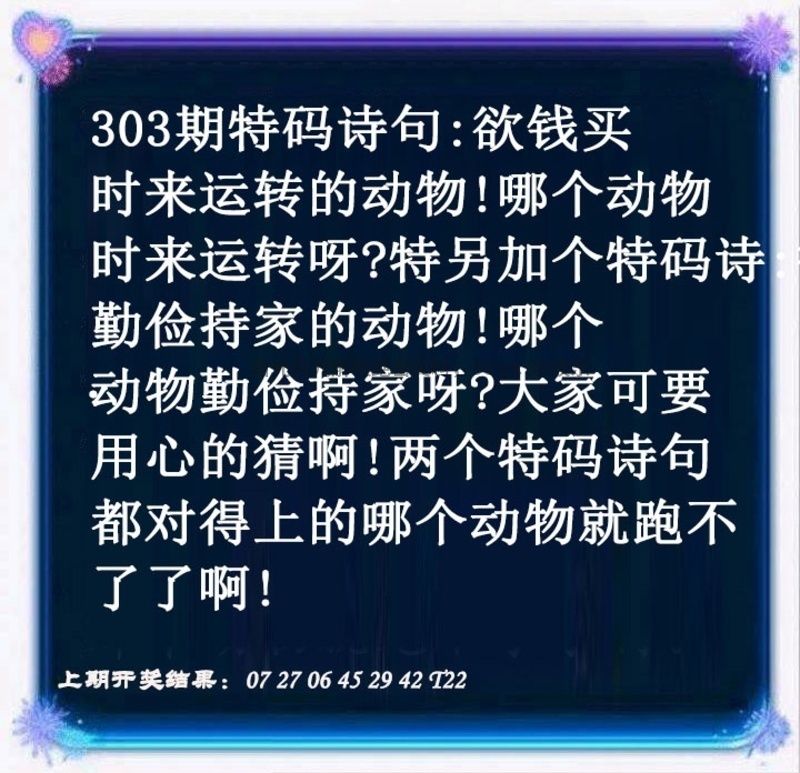 | 303期:五肖 | 兔猪马鼠龙 | 开:兔15 |